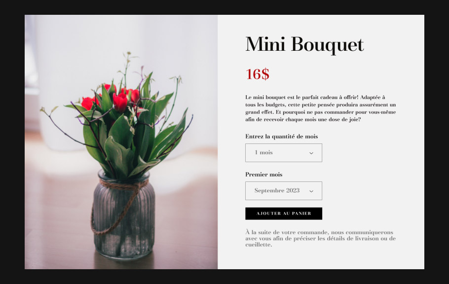 La Main Sur Les Fleurs sells beautiful bouquets. I knew I had to focus on the user to want to buy a monthly plan.