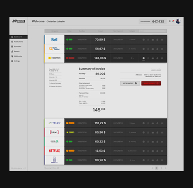 In designing a dashboard, I wanted to make it easy to manage, pay, view all my invoices in one simple way.