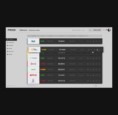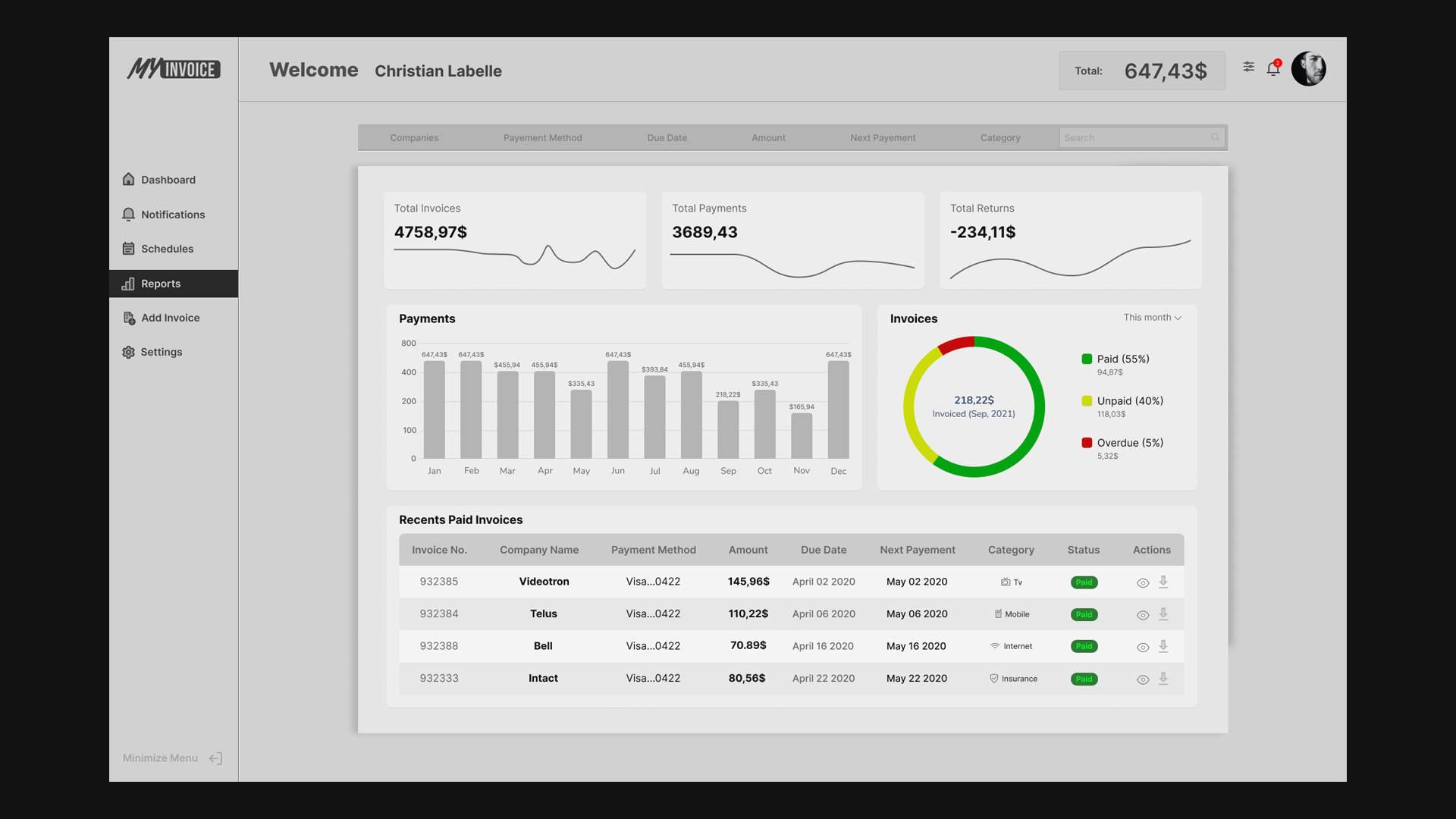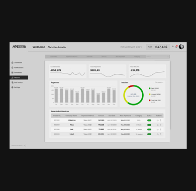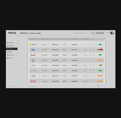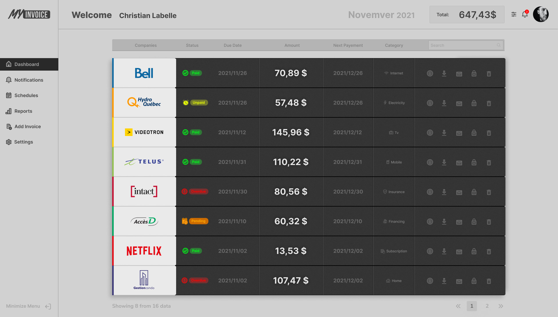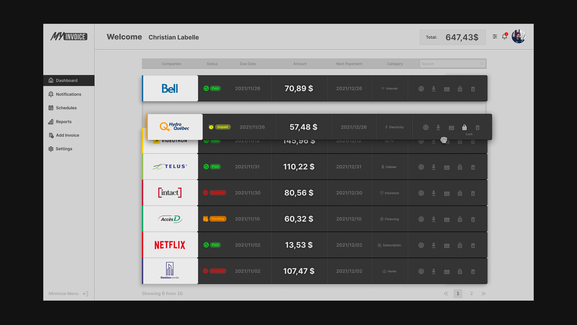 In designing a dashboard, I wanted to make it easy to manage, pay, view all my invoices in one simple way.