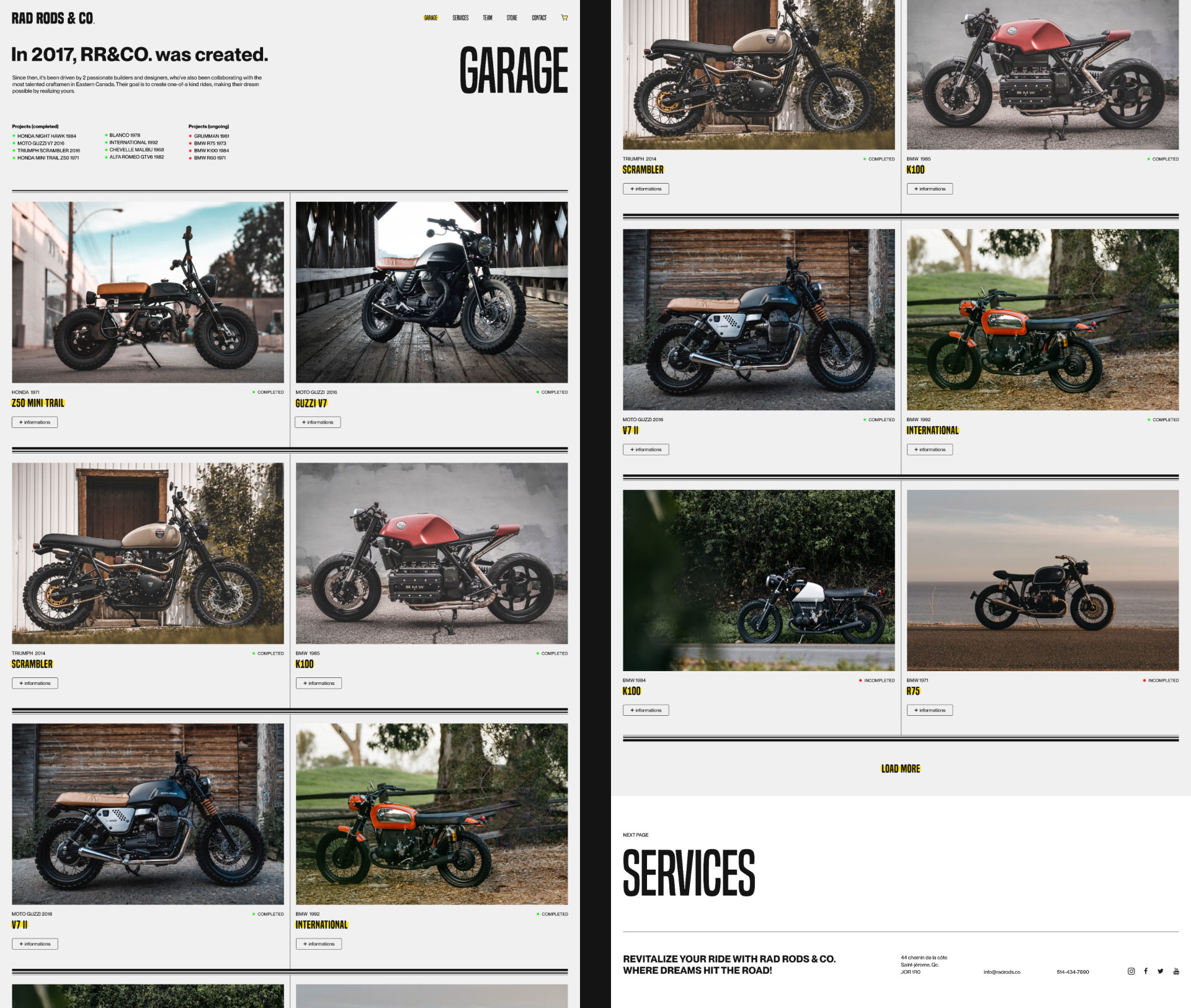 There are so many factors that can make a website look more professional, font choice, color palettes and white space. The challenge was to present to Rad Rods & Co. a few different layouts and navigate between features they wanted and remove the ones that didn’t feel right.