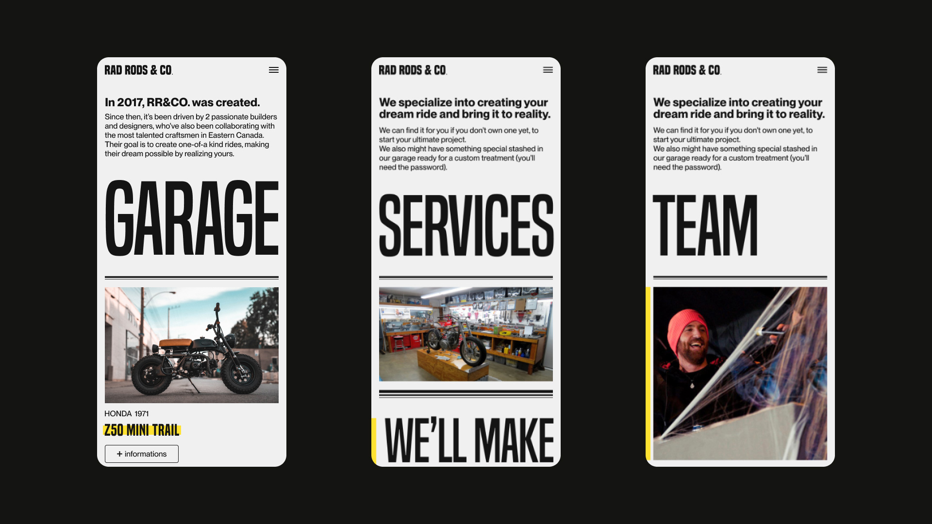 Rad Rods & Co. wanted to have a more representative website of their work and move away from Wordpress templates. I immediately told them since Rad Rods & Co. is a custombuilt shop they needed a custom website.